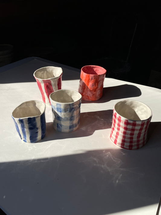Sold outPorcelain Cup - Pink/Orange Gingham